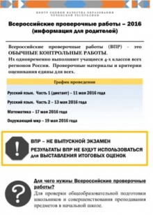 Всероссийские проверочные работы-2016 (информация для родителей).