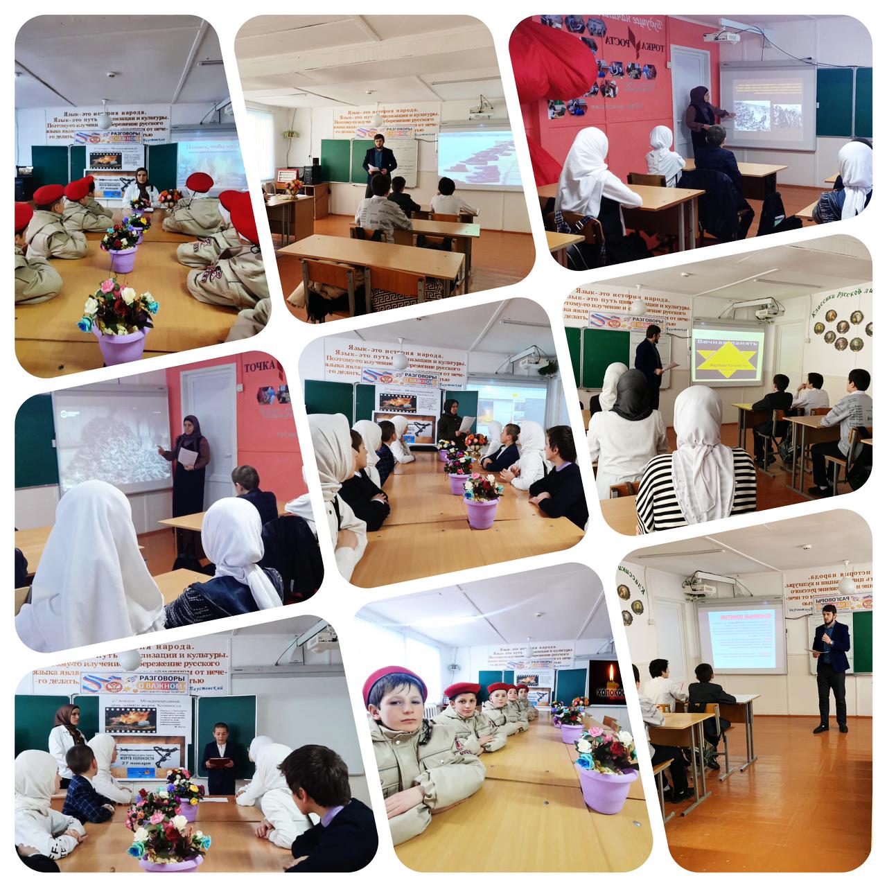 19.01.2023С 16.01. по 21.01.2023 года в МБУ «СОШ N1 с. Кенхи» прошли тематические классные часы, приуроченные Международному дню памяти жертв Холокоста и годовщине освобождения Красной Армией лагеря смерти «Аушвиц» (Освенцим). Классные руководители рассказали детям о том, какое место занимает тема концлагерей в истории России и ВОВ. Рассказы сопровождались тематическими презентациями, на которых учащиеся смогли увидеть весь ужас, испытанный взрослыми и детьми в лагерях Холокост, Освенцим, Бухенвальд и др. Также были просмотрены видео фрагменты. После просмотра ребята высказали свое мнение по этому поводу. На глазах девчонок и мальчишек выступили слезы, когда они увидели изнеможденные, изувеченные тела невинных детей и взрослых. Ребята не стеснялись выразить свой гнев, направленный против нацистов, тех, кто причинил столько боли евреям, полякам, русским и другим народам. В конце мероприятий учащимися самостоятельно были сделаны выводы. Отвечая на вопросы учителей, почему мы должны знать эти ужасные факты нашей истории!