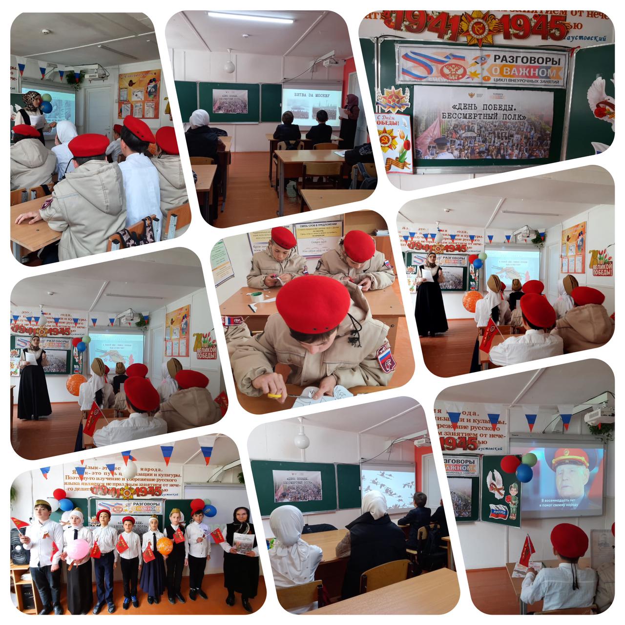 04.05.20234 мая "Разговоры о важном" в МБОУ «СОШ N1 с.Кенхи» прошли на тему «День Победы. Бессмертный полк». Обучающиеся вспомнили важные исторические события ВОВ: битву за Москву, Сталинградскую битву, битву на Курской дуге и др. Говорили об истории появления движения «Бессмертный полк» и его роли в сохранении памяти о ветеранах. Ребята выступали с рассказами о своих родственниках, воевавших и трудившихся в тылу в годы войны, их вкладе в Великую Победу. Говорили о том, как важно бережно хранить память о тех, кого уже нет рядом с нами, и что долг каждого человека - знать историю своей семьи и страны. Посмотрели видеообращение полкового разведчика, полковника в отставке, ветерана Великой Отечественной войны И.П.Лыткина. Также расширили представления о символах Победы – Георгиевской ленте и знамени Победы. На занятиях прозвучали песни «Журавли», «От героев былых времен».